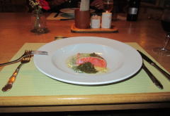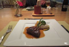 ![]() 6:30 ディナー 古ぼかしい食卓のような席だが この洋食は上々 前菜・魚料理の味はよく 肉もとても柔らかくおいしい デザートもさまざまなフルーツを味わえ満足の時間であった |